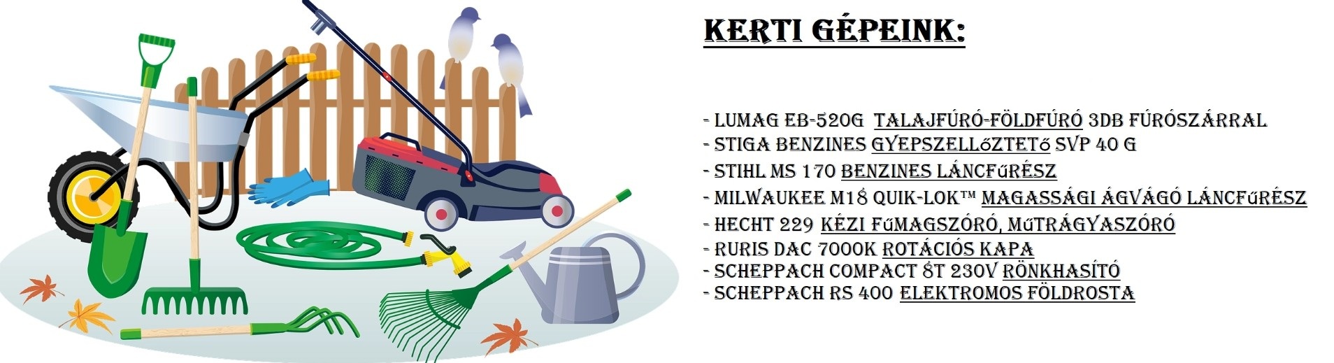 Kerti gépek összesítve! Bővebb információért kattints a képre!